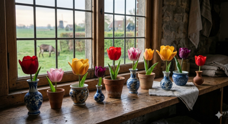 市場がどんなに荒れようと、私の家の棚には常に10株の特別なチューリップが咲き誇っている。