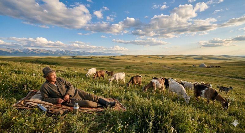中央アジアの草原で、毎年12頭ずつヤギが増え続ける