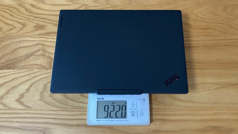 Lenovoの「ThinkPad X13 Gen 6」の本体の重さは、公式発表:約933g、実測922g。