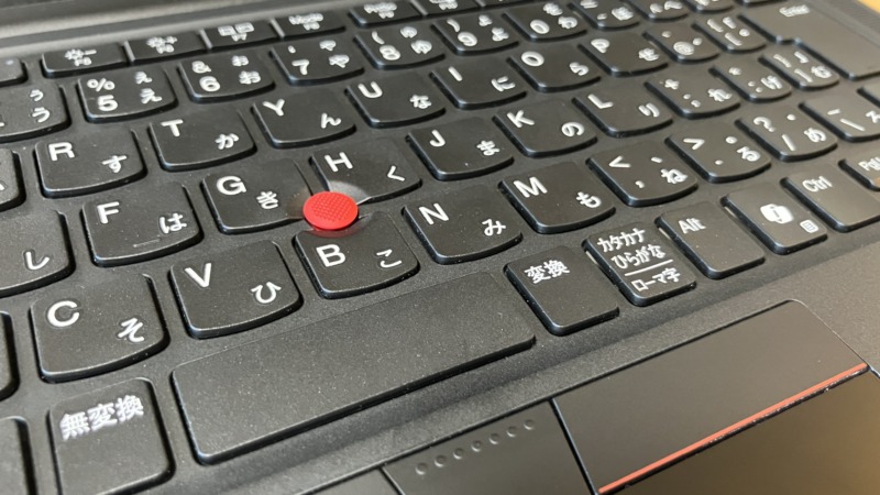 Lenovoのノートパソコンの特徴の一つと言えば、キーボードの中央辺りにある赤いトラックポイント。